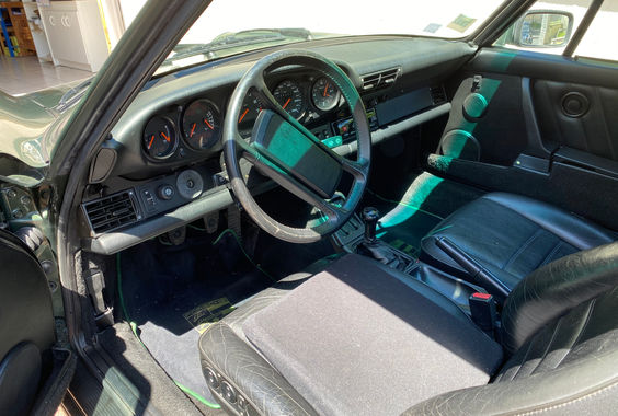 Première 911 de série à transmission intégrale. Peinture refaite intégralement en 2015 dans sa teinte d'origine Vert Chêne Métallisé (commande spéciale réf. 22L93). Sièges cuir électriques chauffants, climatisation auto, toit ouvrant. Embrayage et volant moteur type RS neufs, amortisseurs avant réglables. Intérieur totalement d'origine et impeccable. Matching numbers. Expertisée 48 000 €. Jamais de circuit.