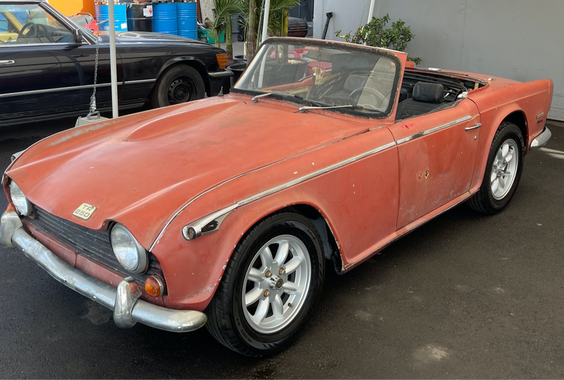 Première main familiale en Californie depuis sa livraison neuve. Couleur d'origine Jasmine Yellow. Grâce au climat sec californien, aucun point de corrosion perforante hormis au milieu de la portière conducteur. Alignements quasi parfaits, châssis et caisse sans déformation ni corrosion. Le moteur tourne mais n'a pas pu être démarré (contacteur). Accompagnement restauration possible via notre spécialiste Triumph.